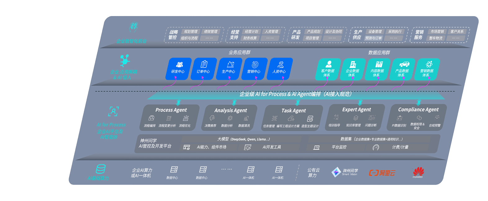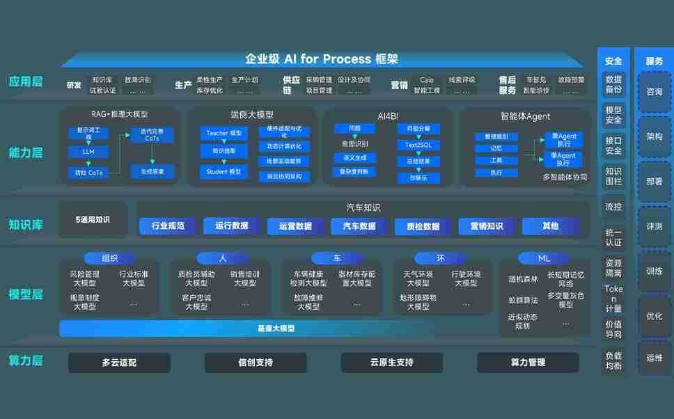 端到端的一站式AI工作空间深度融合了从企业战略规划到日常经营的全流程业务板块,,,定向解决车企内部领域多、、部门多、、、链条长、、、、场景碎片化等难题,,支持车企快速构建以AI为核心的生产力写作体系,,,,实现任务执行与AI能力的无缝集成与交互